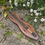 Another interesting historic dulcimer, made in quite large numbers in the 1970s by a family concern.  It’s neat, well-designed, easy to play and sounds great, but was intended mainly for 1:5:5 tuning (DAA or similar).  Now fitted with geared tuners for added ease of tuning, it is from the collection of the late UK dulcimer maestro, John Shaw.