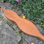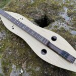 I’m a fan of Ron Ewing’s left-field dulcimer body and soundhole designs AND the quality of his construction.  His dulcimers are light, responsive and always deliver a clear and musical sound.  This relatively early model uses the colourful texture of white oak to great effect.