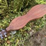 The sycamore top is attractive and the ebony fingerboard and black appointments suit the design.  This is a high end instrument which, with the possum board, currently retails at over $700, before shipping and import costs.  Clear sounding, with some of the sycamore’s natural hardness softened by the walnut body, especially when played with the fitted possum board.